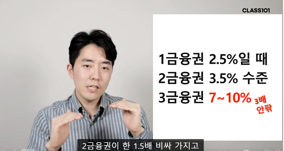 이자가 거의 3배 정도 차이가 난다. 이자를 10%이상 지불하는 것은 굉장히 무리해서 대출을 받는 것이므로 추천하지 않으셨다.