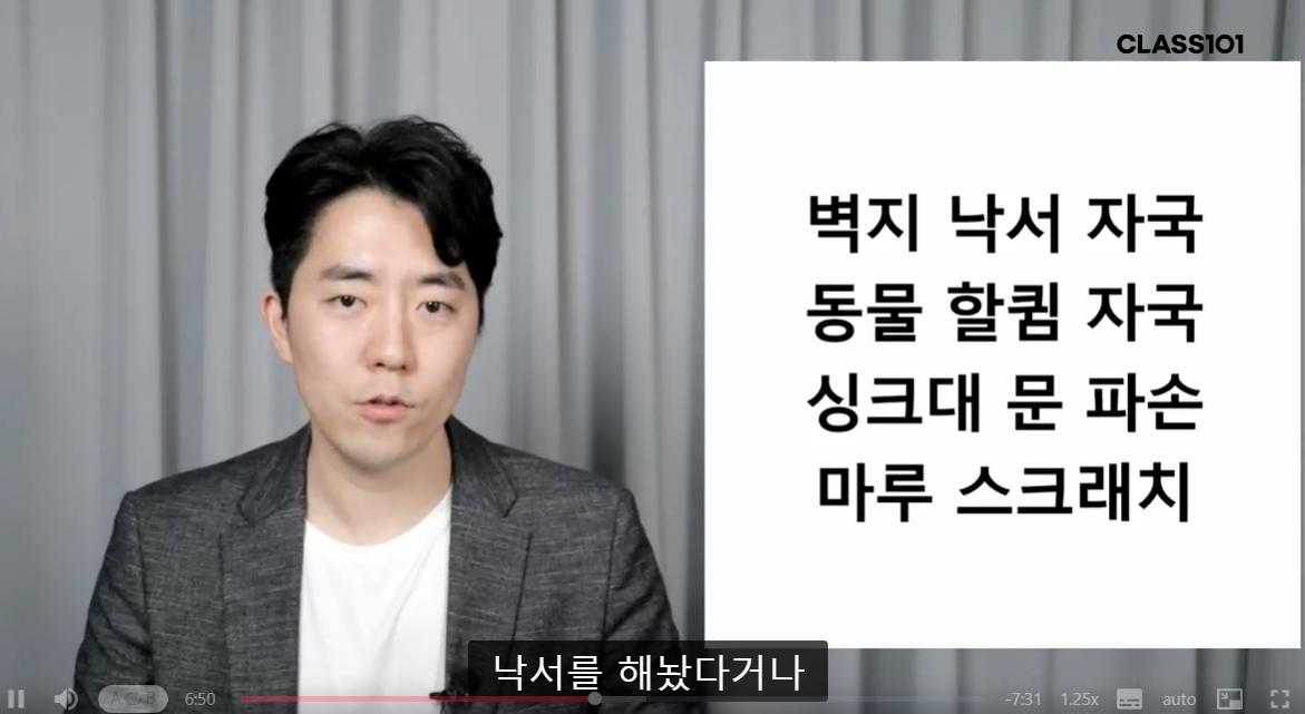 강의를 들으며 계속 강조하셨던 부분은 불편하지만 할 말은 꼭 해야 한다는 것이었다. 그리고 따지고 보면 집주인이 무리한 부탁을 하는 것이 절대 아니다. 부주의로 인해서 마루나 생활 공간이 심하게 파손된 경우 당연히 임차인이 이에 대한 책임을 가져야 할 것이다. 앞으로 어떤 임대를 하든 항상 증거사진을 꼼꼼히 남겨두고 기록해야겠다는 다짐을 했다.